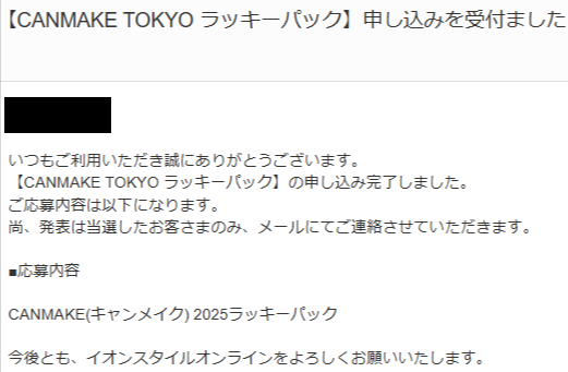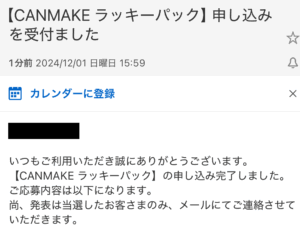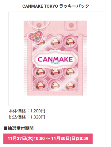 ▼キャンメイク ラッキーパックの抽選に応募しました。