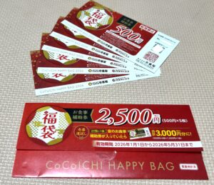 ココイチ福袋は、ほぼ購入金額分の食事券が入った超お得な内容が魅力です。