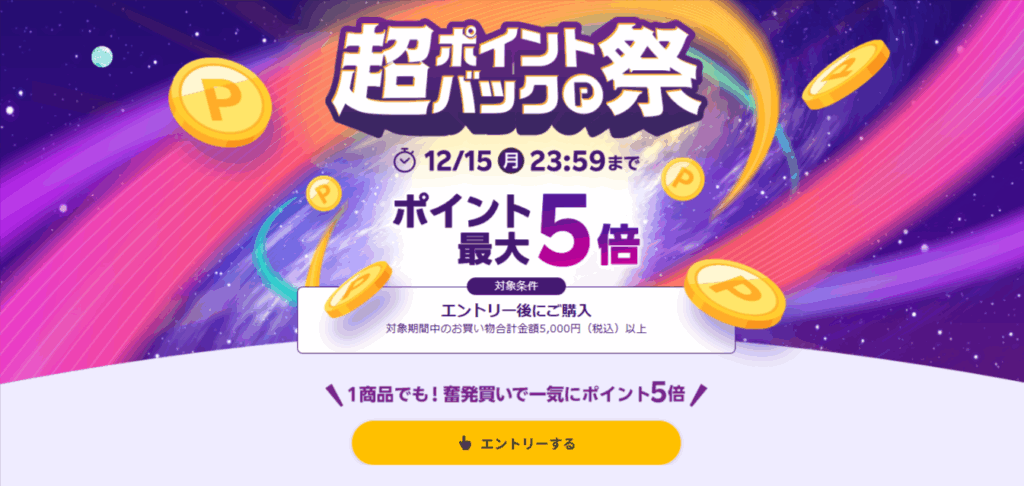 | ▶超ポイントバック祭|12/11~12/15(月)23:59まで 楽天へ▶エントリーすると、ポイント最大5倍Get! ![]() |
