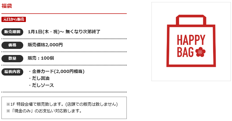☆販売日:2024年1月1日(月)~ ☆整理券配布場所:3Fイーストコート ☆限定200個 |