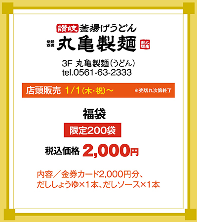 丸亀製麺の福袋2026は、元旦からイオンモールなどの店舗より販売される予定です。