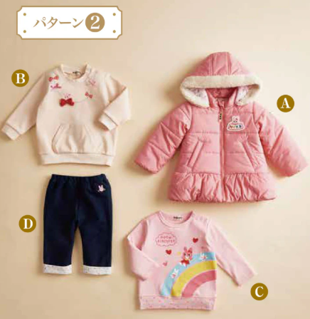 さらに、着回しやすいトレーナーやTシャツ、パンツも入っているので、これ一つで冬の通園コーデや休日コーデが完成しちゃいます。