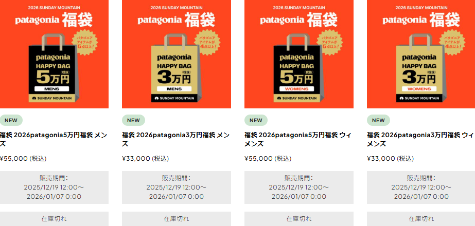 ※パタゴニアの福袋は毎年すぐに売り切れるので、各ショップの会員登録を早めにしておくことをオススメします!